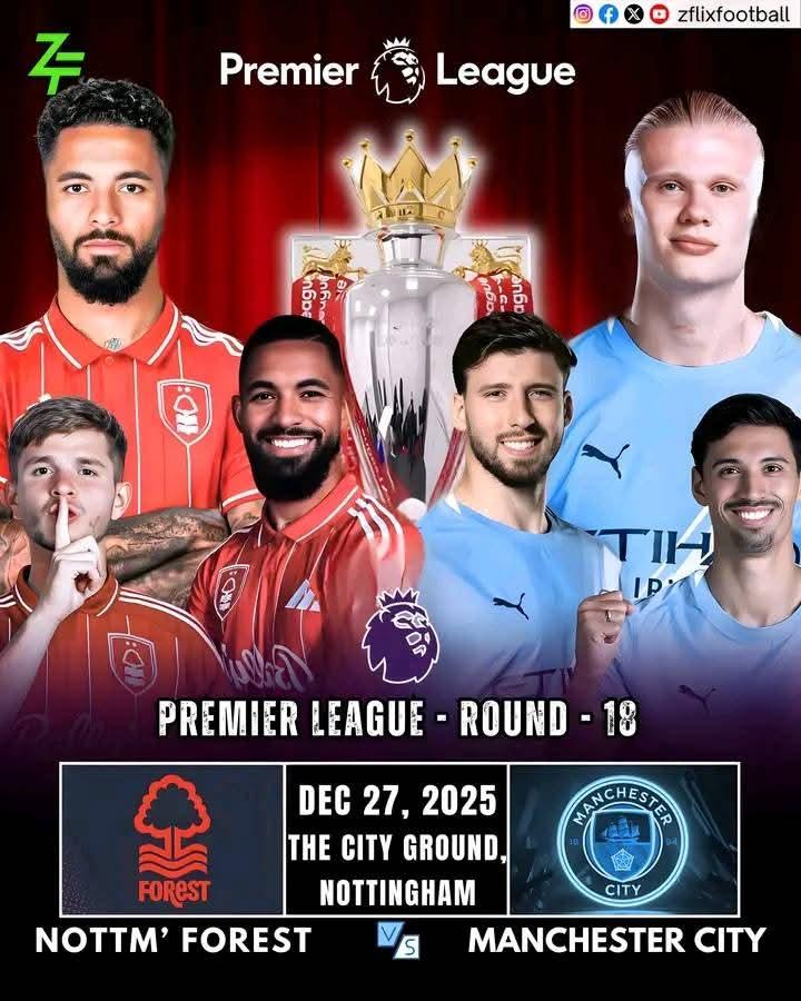 #sportivoNottingham Forest 🆚 Manchester City (Premier League- Round 18) 🗓️ Saturday, 27 December, 2025 ⏰ GMT - 12:30 | BST - 01:30 🏟️ The City Ground, Nottingham, Nottinghamshire, England — #AlNassr #AlZawraa #PremierLeague #flarefootball #zflixfootball ... #sportivo0 Commenti 0 condivisioni 131 Views 0 Anteprima -