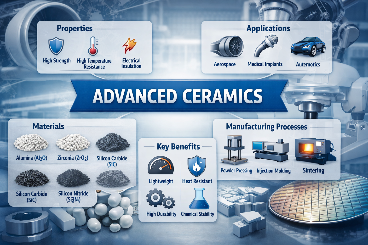 Advanced ceramics are high-performance materials with superior mechanical, thermal, and chemical properties. They are widely used in aerospace, automotive, medical, electronics, and defense industries, offering durability, heat resistance, and electrical insulation. The rising demand for high-performance, lightweight, and efficient components is driving the expansion of the Advanced Ceramics Market.