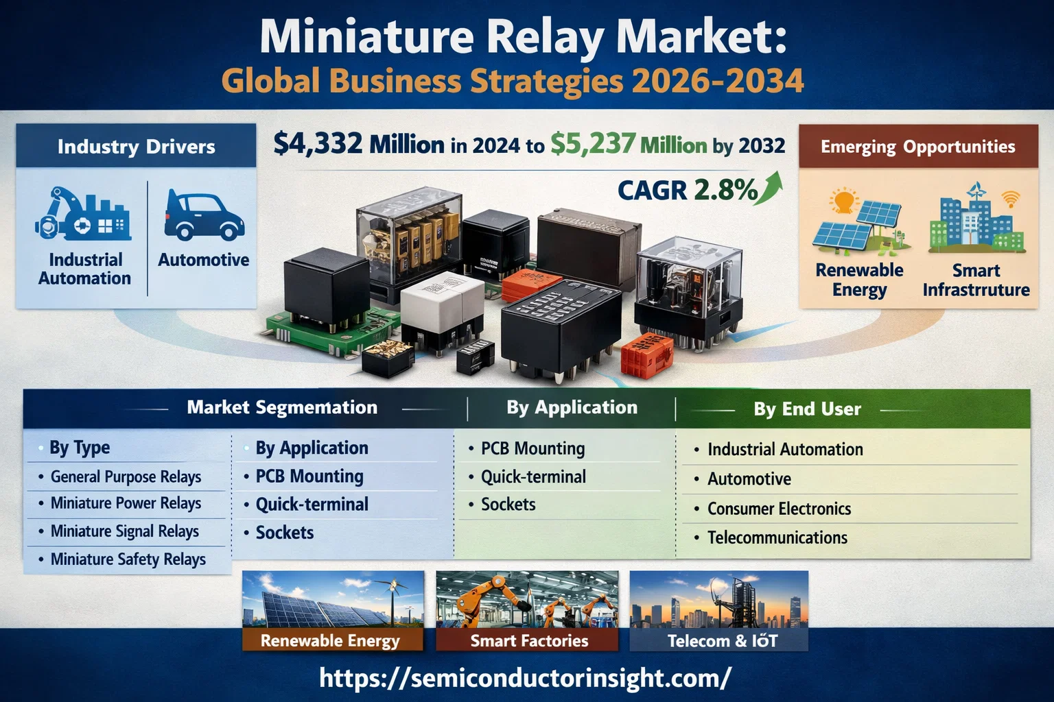 Miniature Relay Market size was valued at USD 4,332 million in 2024 to USD 5,237 million by 2032, exhibiting a CAGR of 2.8% during the forecast period. This sustained growth trajectory is detailed in a comprehensive new report published by Semiconductor Insight. The study underscores the indispensable role of these compact electro-mechanical and solid-state switching devices in managing and isolating electrical circuits across a vast spectrum of industries. Miniature relays are fundamental to the functionality of countless electronic and electrical systems, providing reliable control in a small footprint that is essential for modern, space-constrained applications.