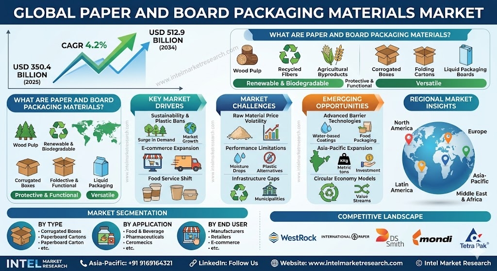 According to a new report from Intel Market Research, the global Paper and Board Packaging Materials market was valued at USD 350.4 billion in 2025 and is projected to reach USD 512.9 billion by 2034, growing at a steady CAGR of 4.2% during the forecast period (2026–2034). This expansion is fueled by the global shift toward sustainable packaging, e-commerce growth, and stringent environmental regulations phasing out single-use plastics.