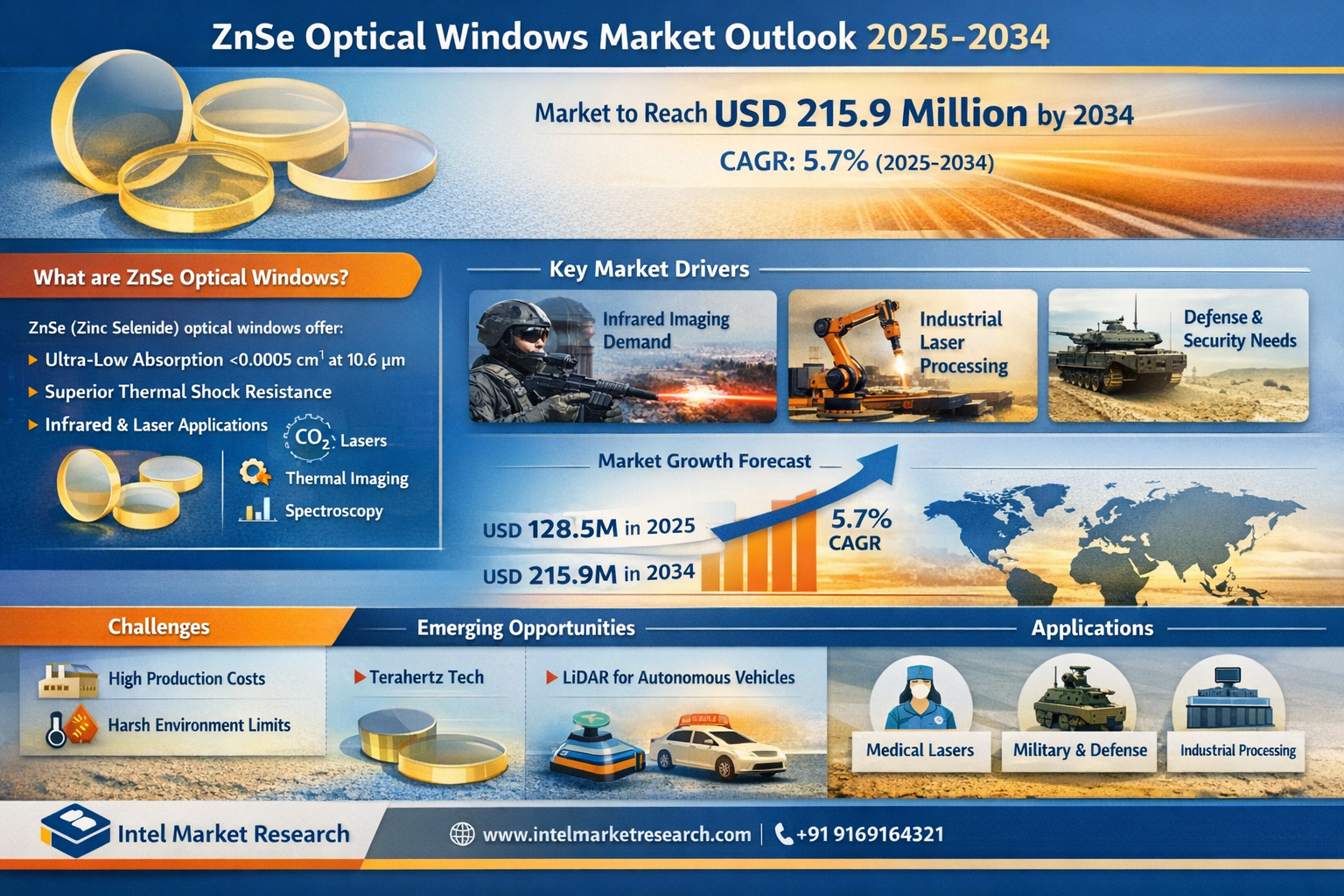 According to a new report from Intel Market Research, the global ZnSe optical windows market was valued at USD 128.5 million in 2025 and is projected to reach USD 215.9 million by 2034, growing at a steady CAGR of 5.7% during the forecast period (2025-2034). This growth is fueled by expanding infrared applications, laser technology advancements, and increasing defense sector requirements for high-performance optical components.