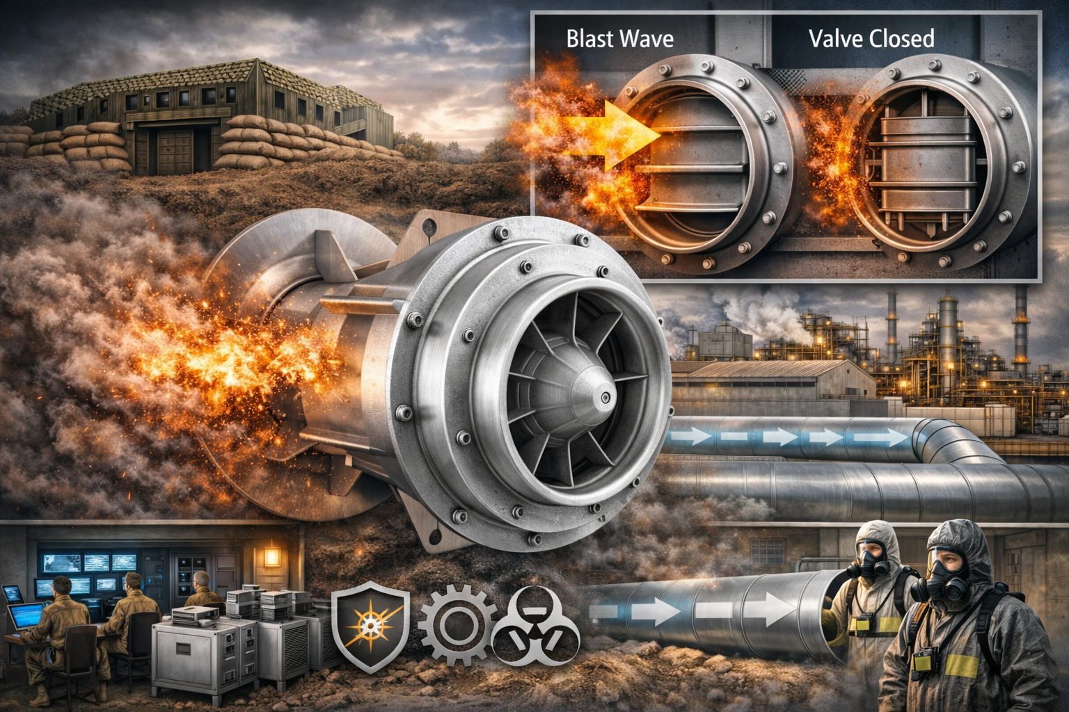 In high-security environments such as bunkers, command centers, and CBRN (Chemical, Biological, Radiological, Nuclear) shelters, blast valves are critical for ensuring personnel safety and operational continuity.