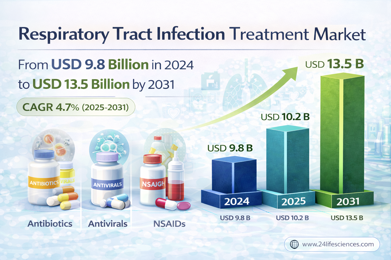 According to a newly published market research report by 24LifeSciences, global respiratory tract infection treatment market was valued at USD 9.8 billion in 2024 and is projected to reach USD 13.5 billion by 2031, growing at a compound annual growth rate (CAGR) of 4.7% during the forecast period 20252031.