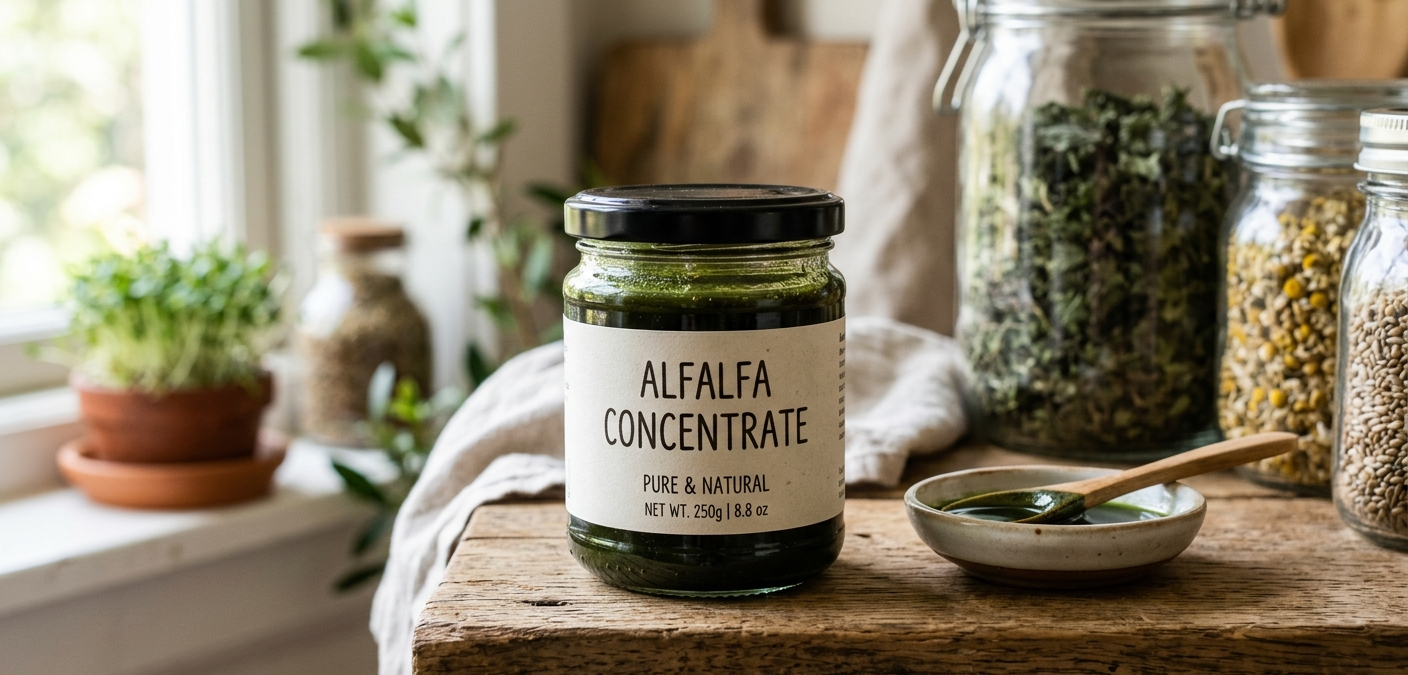Alfalfa concentrate is a concentrated form of alfalfa, a legume that is primarily used for animal feed due to its high protein content and essential nutrients. However, it is also gaining popularity in human food products, such as juices, supplements, and protein powders. The concentration process enhances its nutrient profile, making it a versatile ingredient for various applications.