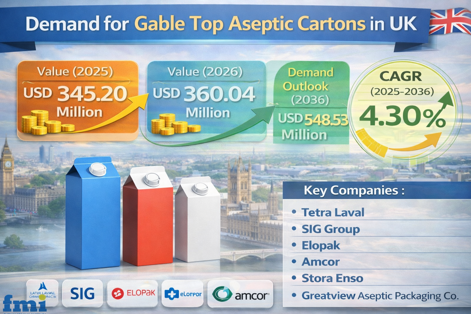 UK Gable Top Aseptic Cartons Market to Grow 1.5X by 2035 Driven by Food Safety and Shelf-Life Demand as Tetra Laval, Amcor
