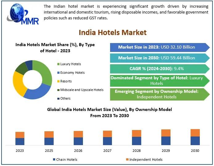 Maximize Market Research, a prominent business consulting firm, has published an in-depth report on the India Hotels Market   The study delivers key business insights such as demand trends, pricing analysis, and a detailed review of the competitive landscape. It thoroughly assesses the current market conditions and includes forecasts for the India Hotels Market  through the year 2030.