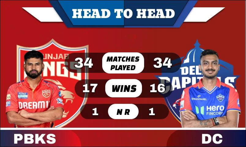 DC vs PBKS Head-to-Head Record in the Indian Premier League: