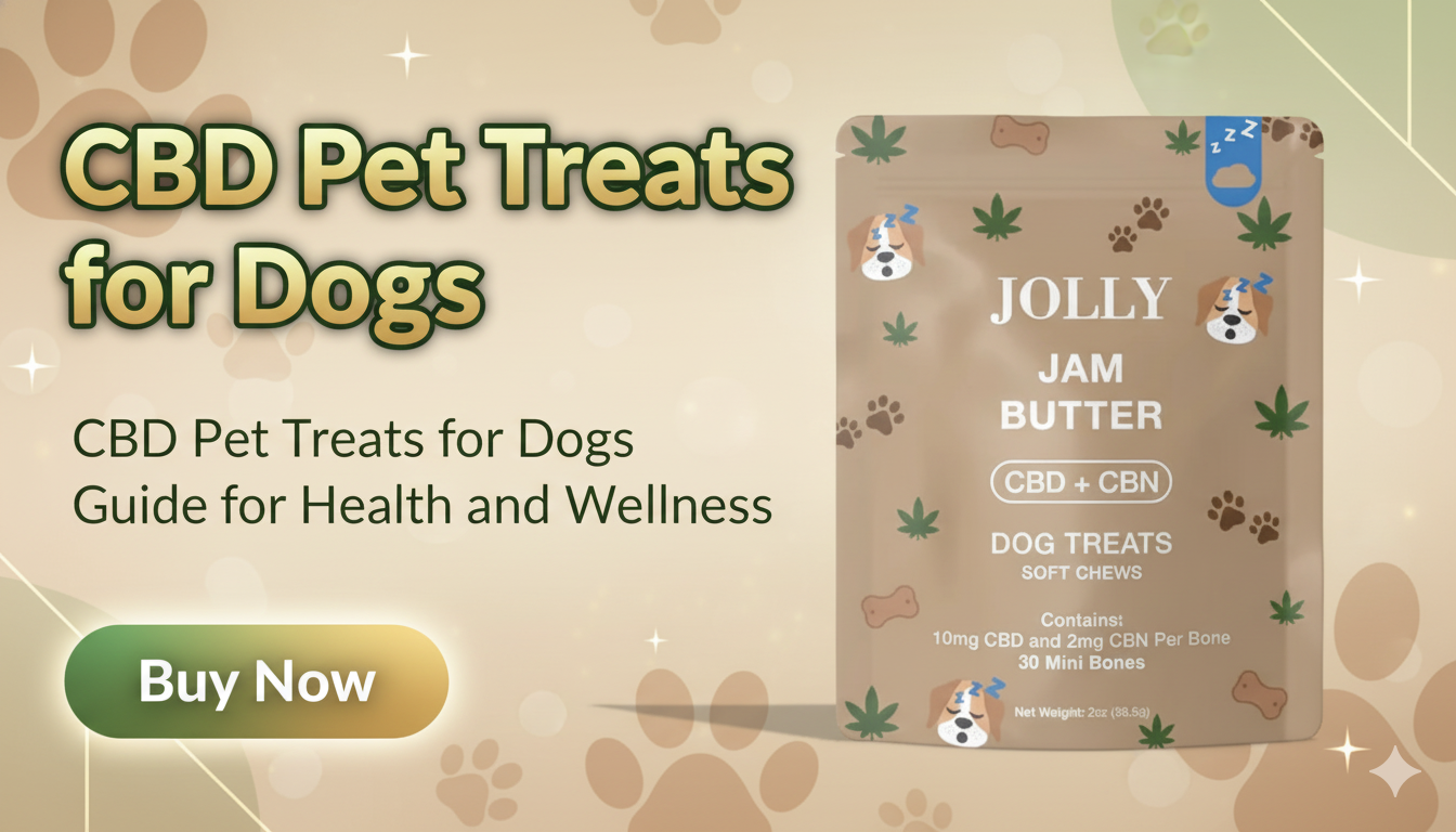 For a premium option, try Jolly Cannabis (Dog Treats CBD+CBN - Jam Butter)  formulated with both CBD and CBN to provide calming, therapeutic support for dogs. These treats make giving your pet the benefits of CBD simple, safe, and enjoyable.
