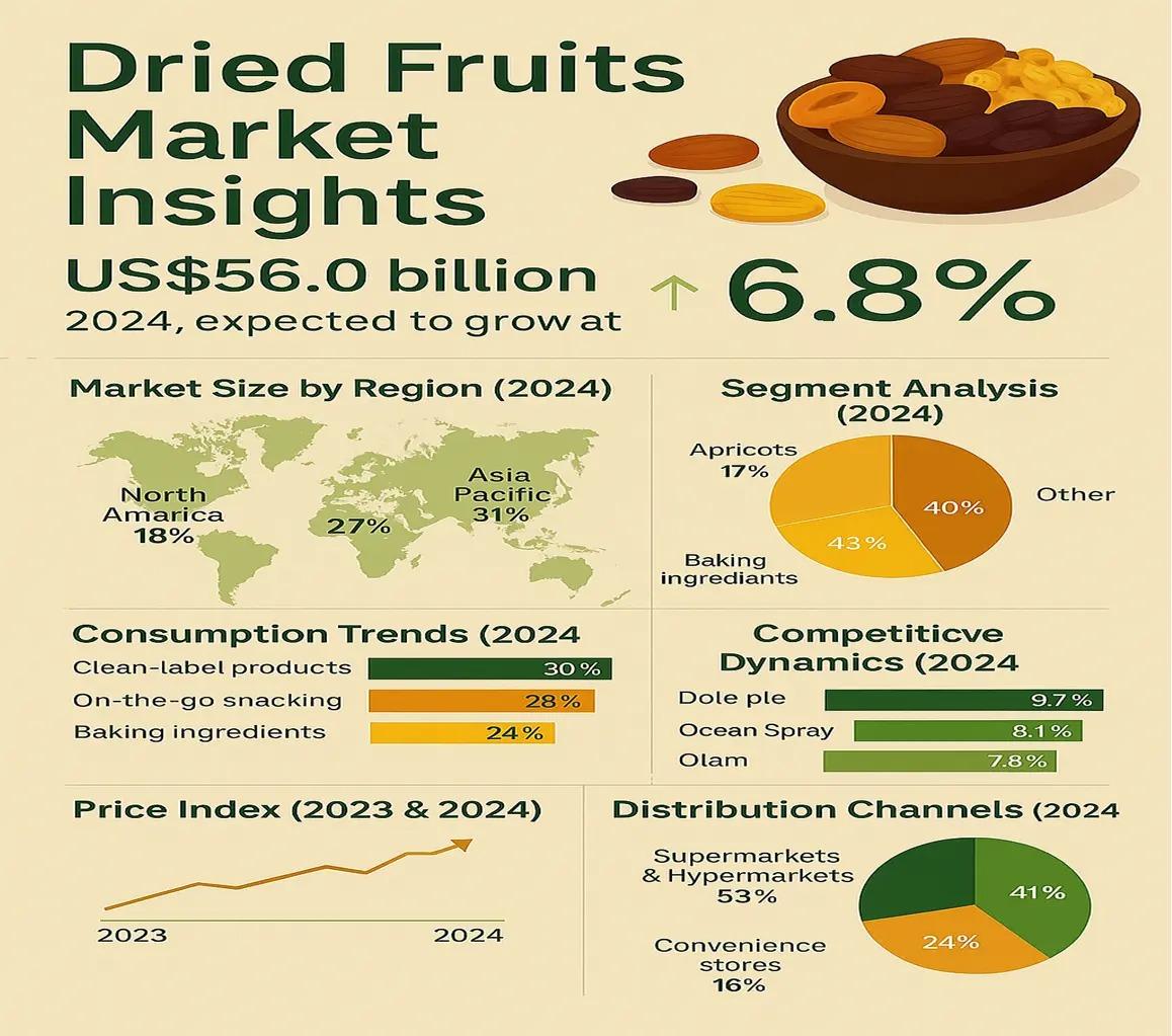 The  Dried Fruits Market     research offers a detailed exploration of the key drivers behind industry growth and the potential challenges it may face. It equips stakeholders with a thorough understanding of the competitive environment by highlighting major companies, their product portfolios, and emerging investment prospects. Combining both qualitative and quantitative data, the report presents a balanced view of the market's present condition and future outlook.