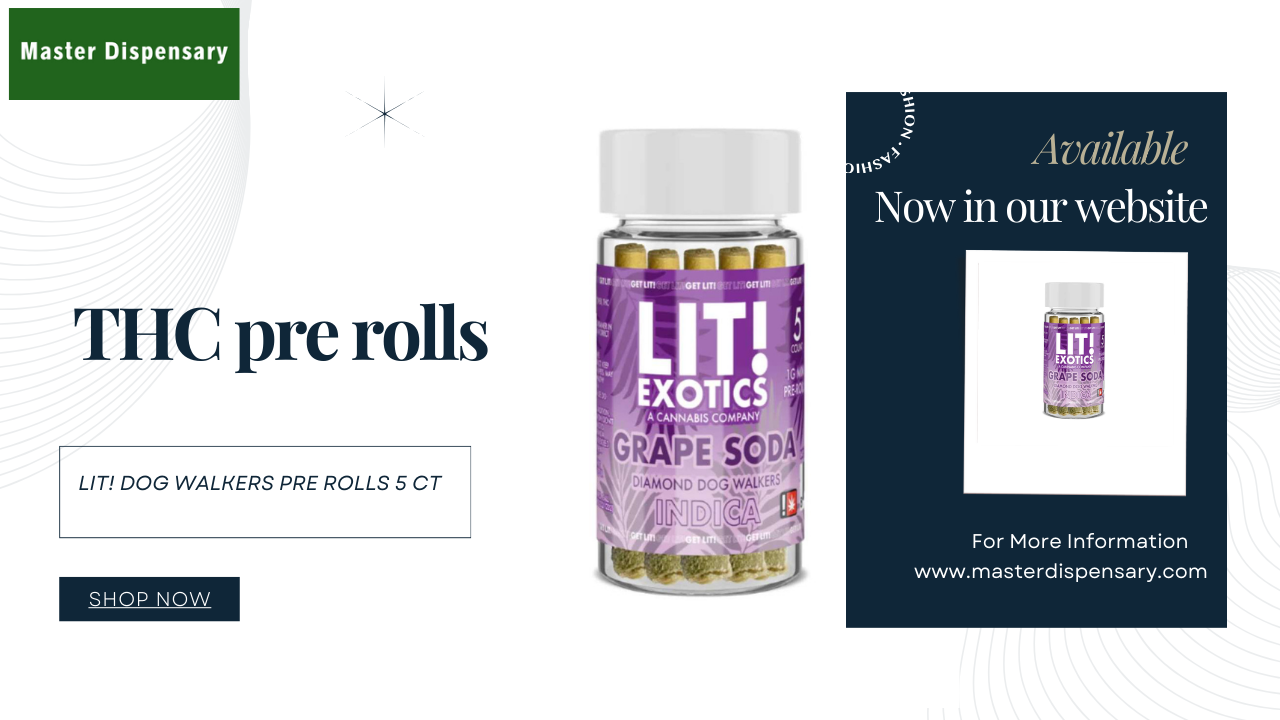 At the center of this category lies one of the top-performing consumer favorites: the Lit! Dog Walkers Pre Rolls 5 ct, available at Master Dispensary.