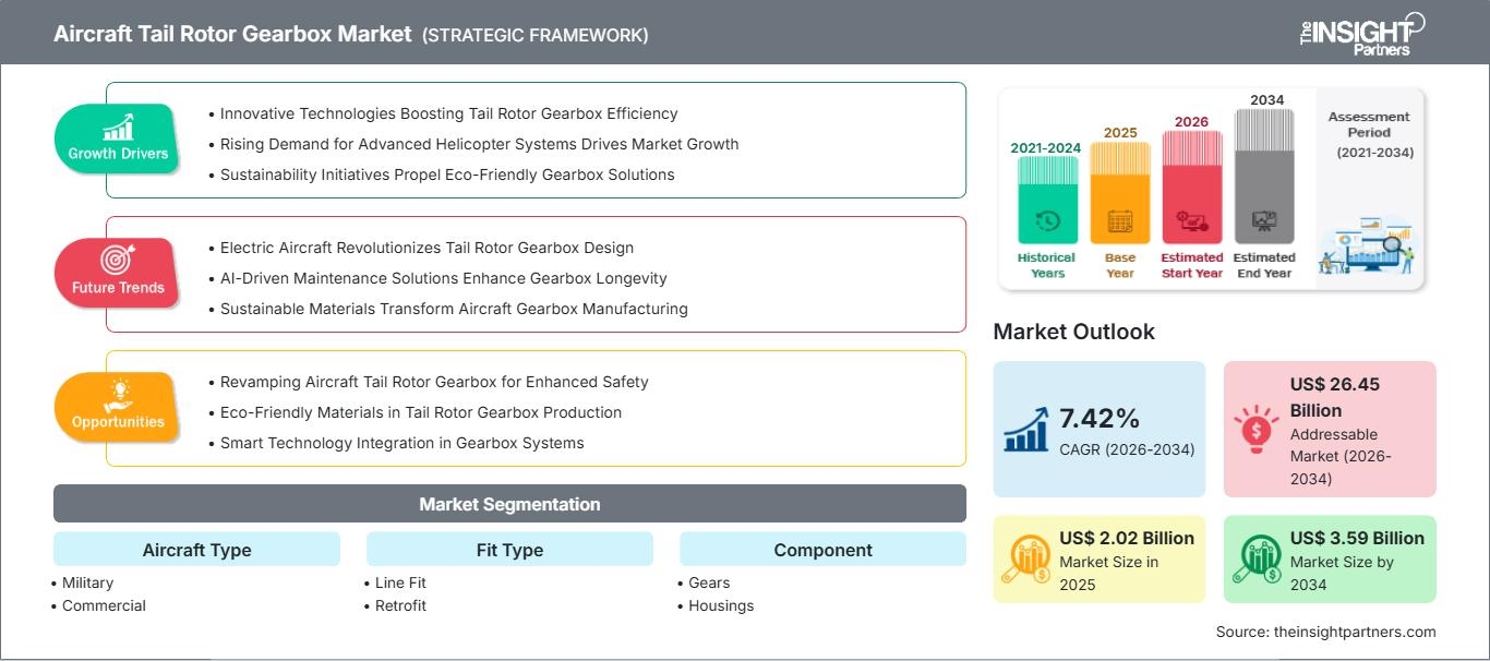 The global Aircraft Tail Rotor Gearbox Market size is projected to reach US$ 3.59 billion by 2034 from US$ 2.02 billion in 2025. The market is anticipated to register a CAGR of 7.42 percent during the forecast period 2026 to 2034. This growth is largely fueled by the dual requirements of military fleet modernization and the expansion of the civil helicopter sector for medical and emergency services.
