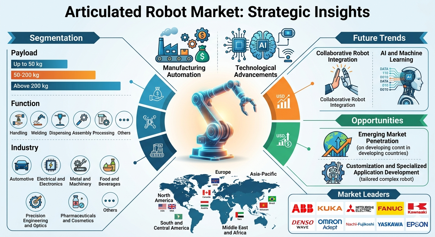 Continuous advancements in robotics technology are playing a critical role in market growth. Innovations such as AI-powered vision systems, advanced sensors, and collaborative robot capabilities are enabling articulated robots to perform more complex and dynamic tasks.