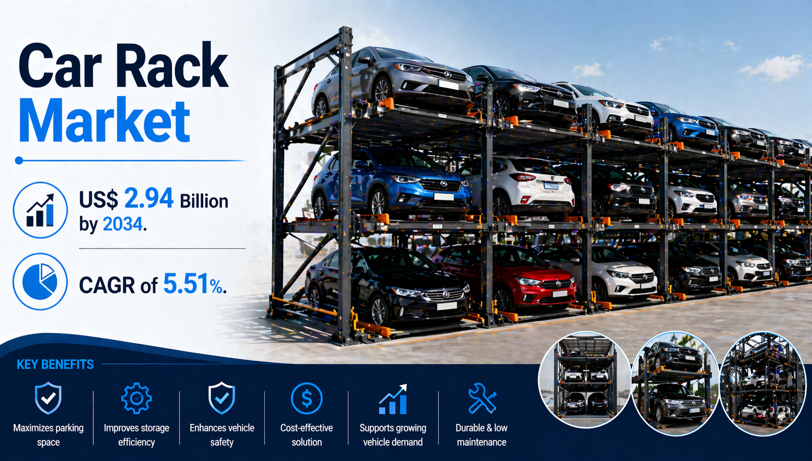 According to the latest industry intelligence, the Car Rack Market is expected to register a CAGR of 5.51% from 2026 to 2034, with the market size expanding from US$ 1.81 Billion in 2025 to US$ 2.94 Billion by 2034.