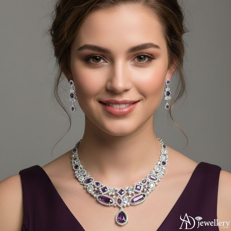 For western outfits or modern dresses, lighter and more delicate designs found in AD Jewellery Online collections are ideal. Minimal necklace sets with subtle sparkle create a sophisticated and elegant look.