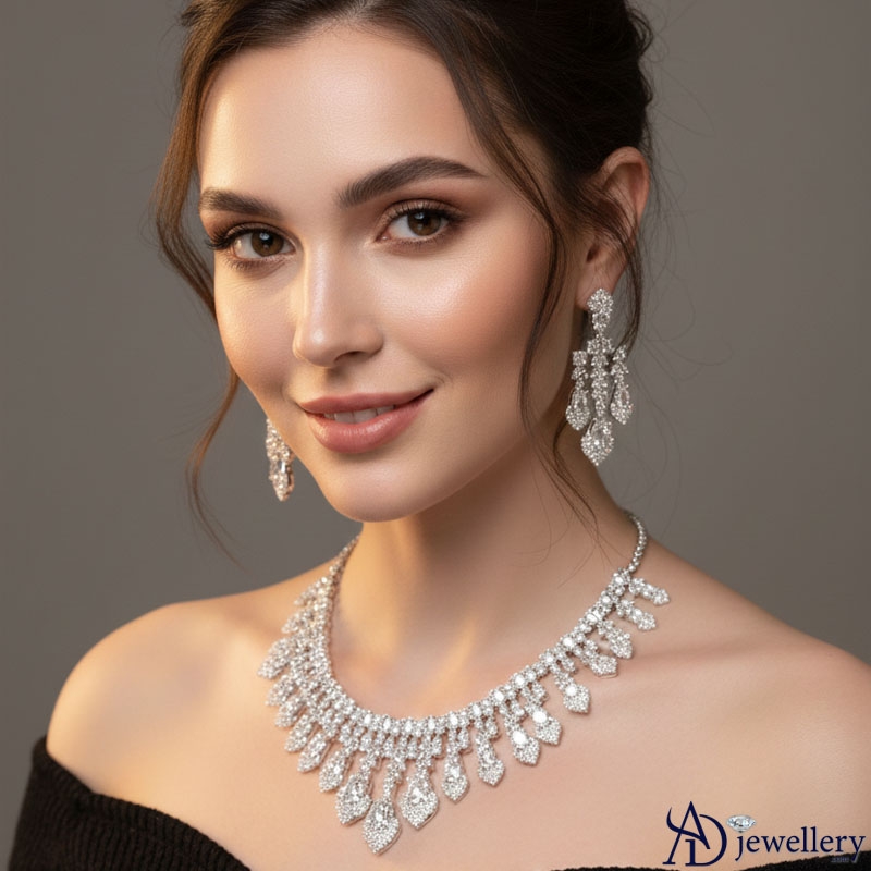 American Diamond jewellery has become a popular choice for women who want elegance, sparkle, and affordability in their accessories. An AD Jewellery Set offers the beauty of diamond-inspired jewellery while remaining budget-friendly and versatile.