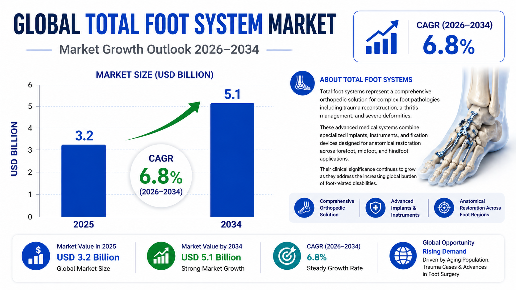 According to a newly published market research report by 24LifeSciences, global total foot system market was valued at USD 3.2 billion in 2025 and is projected to reach USD 5.1 billion by 2034, growing at a compound annual growth rate (CAGR) of 6.8% during the forecast period 2026–2034.