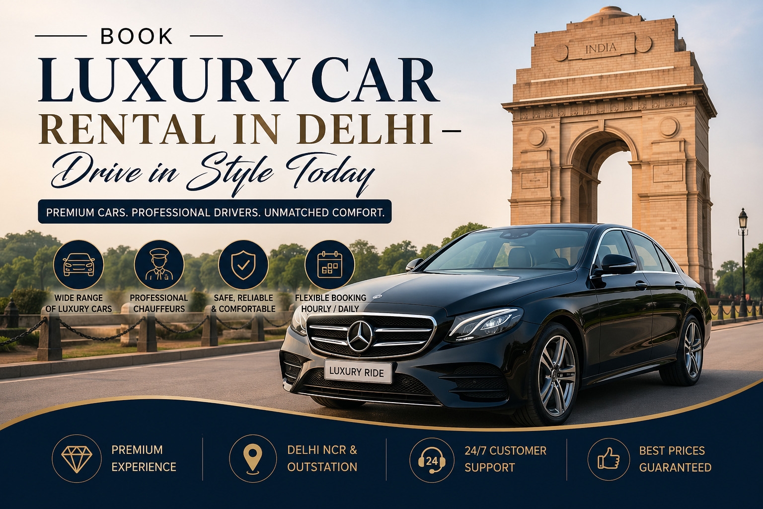 Booking a luxury car rental with driver in Delhi is quick and convenient. Most providers offer: