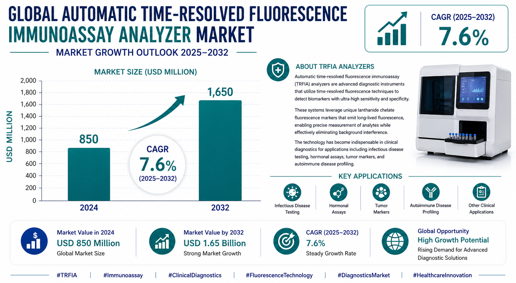 According to a newly published market research report by 24LifeSciences, global automatic time-resolved fluorescence immunoassay analyzer market was valued at USD 850 million in 2024 and is projected to reach USD 1.65 billion by 2032, growing at a compound annual growth rate (CAGR) of 7.6% during the forecast period 2025–2032.