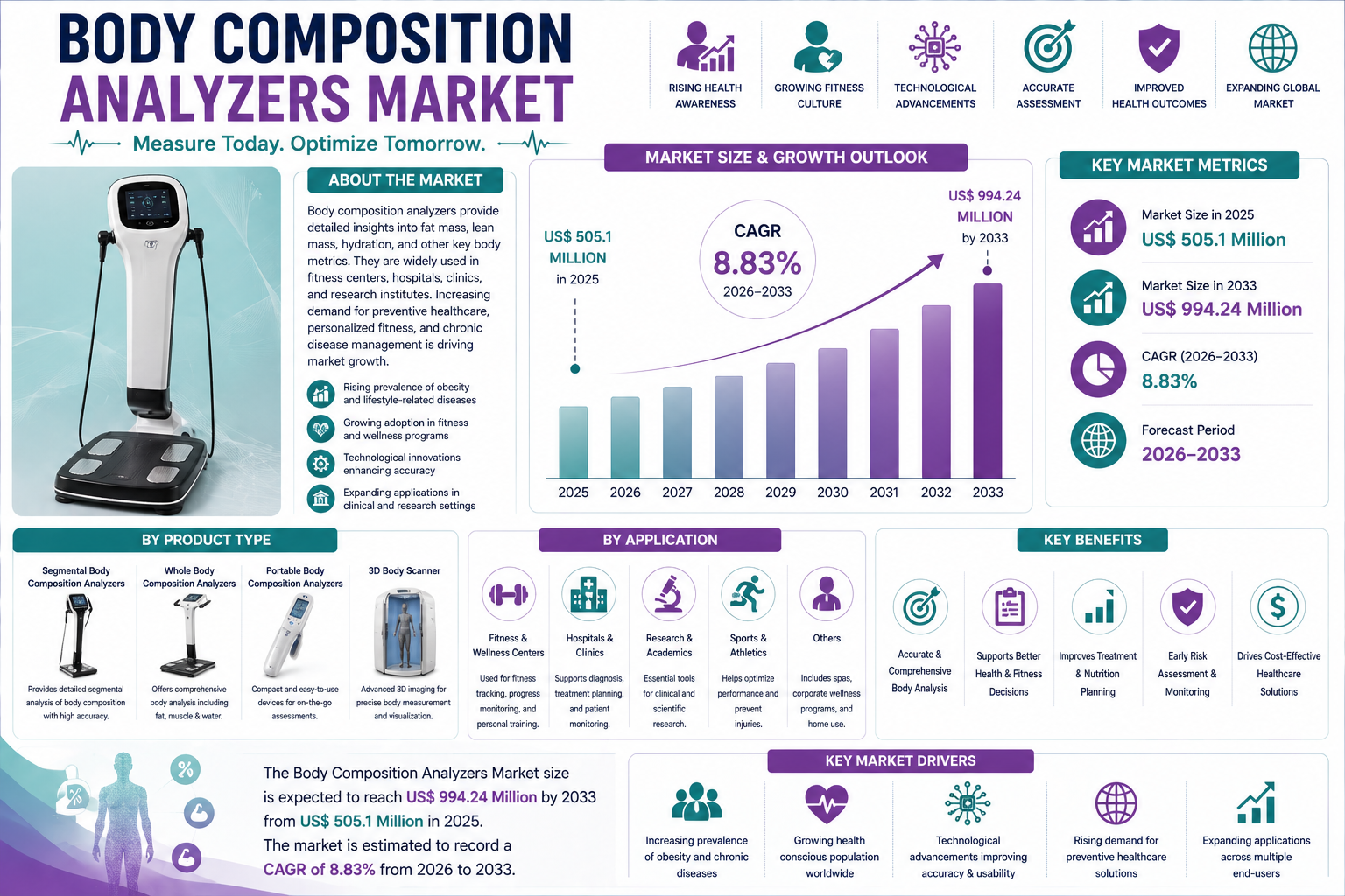Body Composition Analyzers Market Industry Analysis 2026–2033: 8.83% CAGR Driven by Fitness, Healthcare & Lifestyle Monitoring