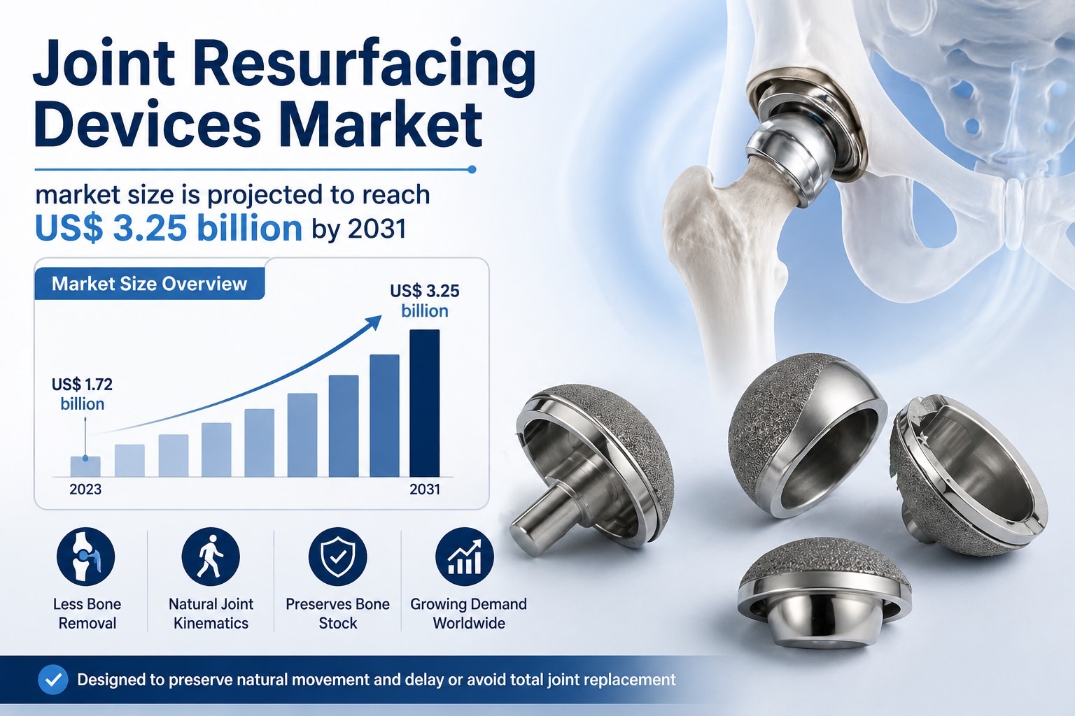 The joint resurfacing devices market is steadily expanding as healthcare systems worldwide adopt advanced orthopedic procedures aimed at preserving bone structure and improving patient mobility. Joint resurfacing has gained prominence as a less invasive alternative to total joint replacement, particularly for younger and active patients suffering from early-stage joint degeneration. The rising prevalence of osteoarthritis, sports injuries, and age-related joint disorders continues to drive demand for innovative resurfacing solutions across global markets.