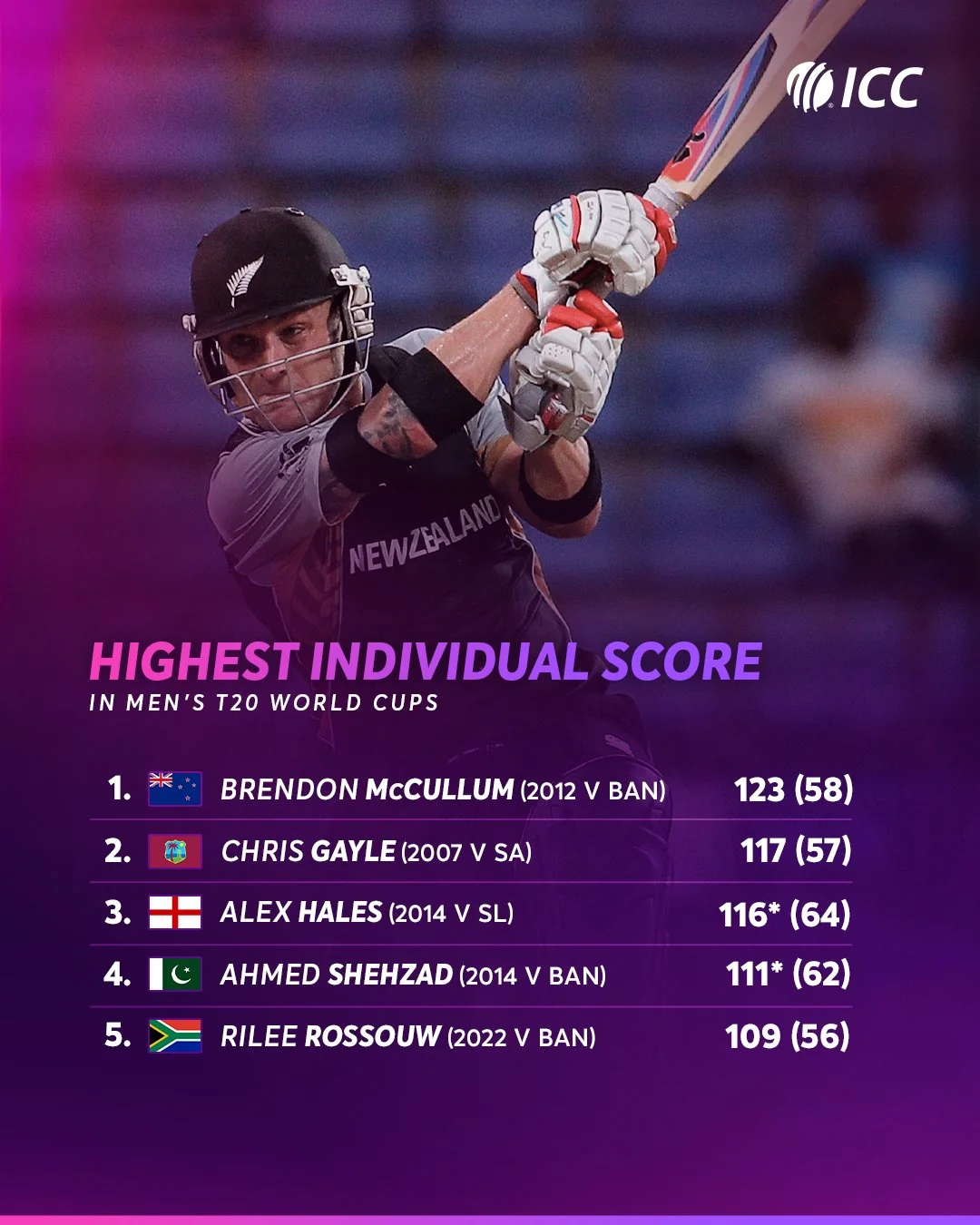 ICC T20 World Cup Highest Individual Score Stats & Record