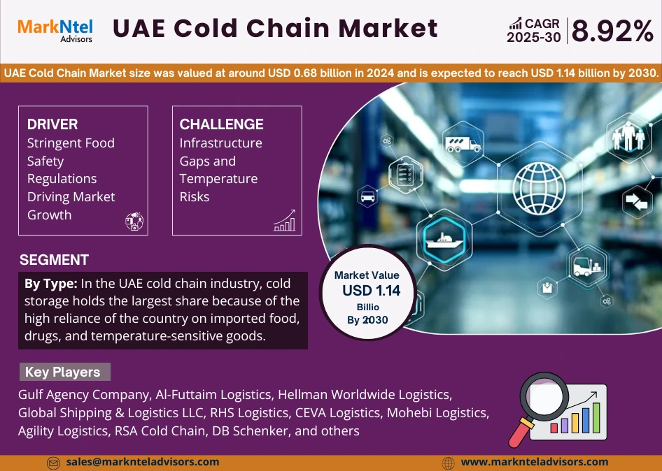 MarkNtel Advisors, a leading market research and consulting firm, has announced the release of its latest study titled UAE Cold Chain Market Research Report: Forecast (2025–2030). This report provides a detailed assessment of the UAE Cold Chain Market, covering its evolving dynamics, emerging trends, key growth drivers, major challenges, and competitive landscape.