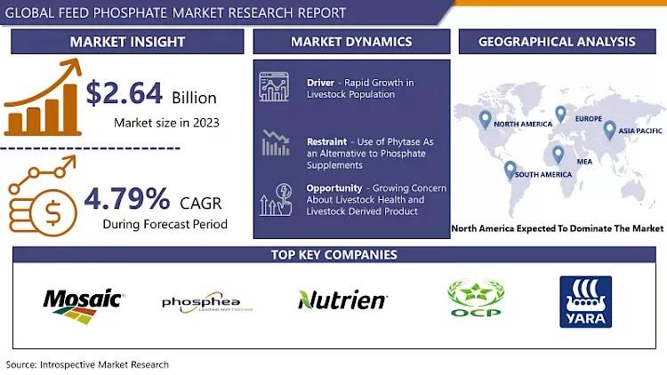 According to a new report published by Introspective Market Research, Feed Phosphate Market by Type, Form, and Livestock, The Global Feed Phosphate Market Size Was Valued at USD 2.64 Billion in 2023 and is Projected to Reach USD 4.02 Billion by 2032, Growing at a CAGR of 4.79%.