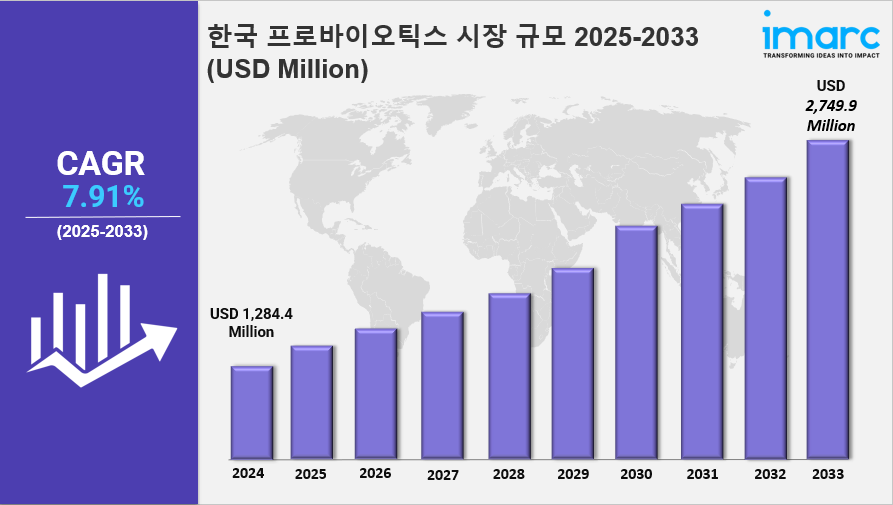 IMARC 그룹은 최근 "한국 프로바이오틱스 시장 규모, 점유율, 동향, 원료, 유통 채널, 적용 분야, 형태 및 지역별 전망, 2025-2033"이라는 새로운 연구 연구를 발표했으며, 시장 동인, 세분화, 성장 기회, 동향 및 경쟁 환경을 상세히 분석하여 현재와 미래의 시장 시나리오를 이해하고 있습니다.