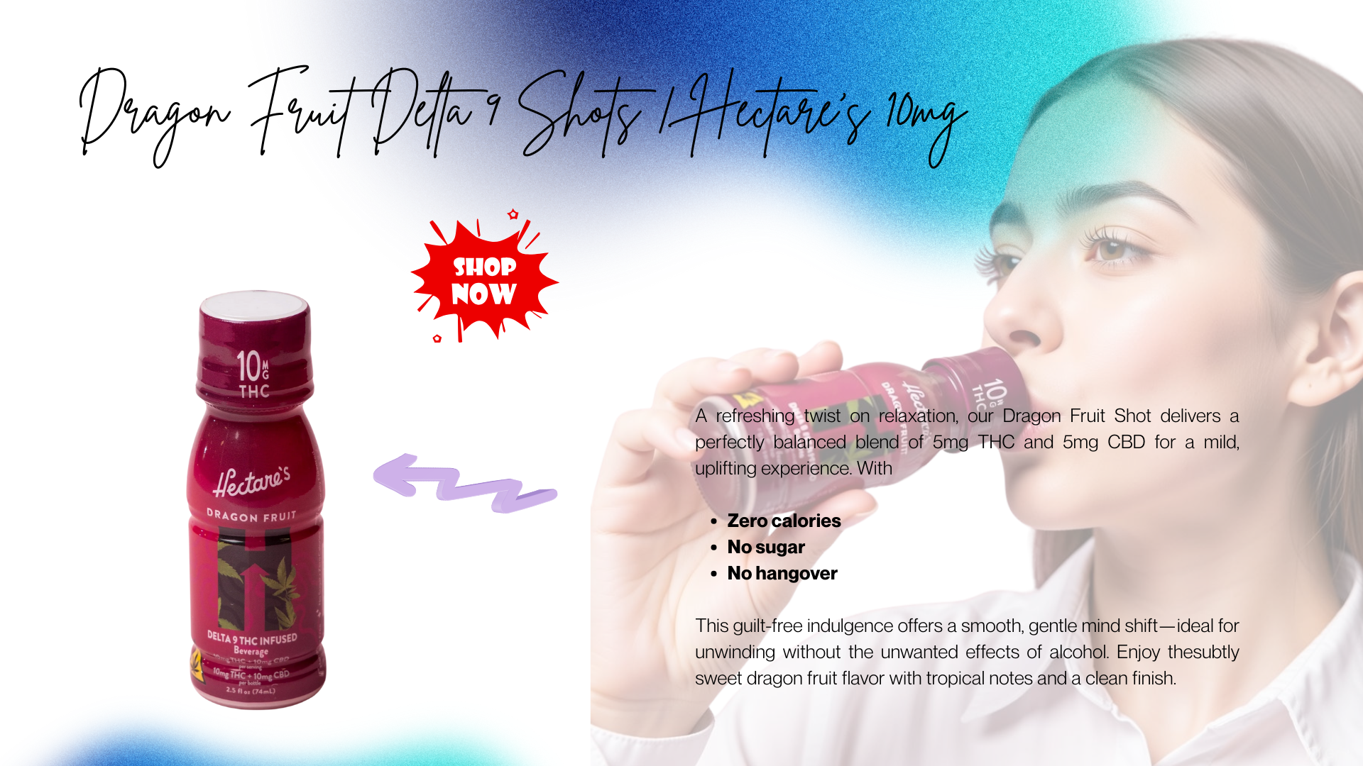 Hectares CBD Drink is a ready-to-drink beverage collection that includes Delta 9 Shot, Dragon Fruit Shot, Delta Dragon, and 9 Fruit. These drinks focus on tropical flavor and convenience.