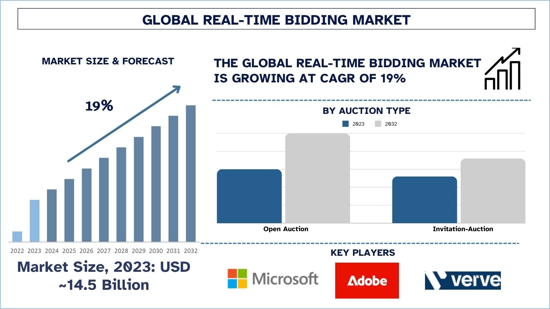 According to UnivDatos, the growth of the Real-Time Bidding (RTB) market is driven by increasing digital advertising expenditure, rising mobile usage, growing demand for personalized advertising, and rapid advancements in artificial intelligence (AI) and machine learning (ML). As highlighted in the “Real-Time Bidding Market” report, the global RTB market was valued at USD 14.5 billion in 2023 and is expected to grow at a robust CAGR of around 19% during the forecast period (2024–2032), reaching USD billion by 2032.