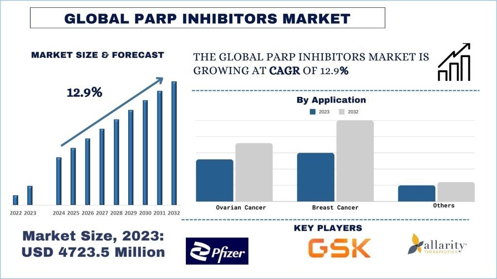 According to UnivDatos, the PARP inhibitors market was valued at USD 4,723.5 million in 2023 and is projected to grow at a robust CAGR of approximately 12.9% during the forecast period (2024–2032), driven largely by rising investments in PARP inhibitor research and development. Poly (ADP-ribose) polymerase (PARP) inhibitors have emerged as a breakthrough class of oncology therapeutics, particularly for the treatment of ovarian, breast, and prostate cancers. Over the past few years, demand for PARP inhibitors has increased significantly due to their unique mechanism of action, which targets cancer cells with defective DNA repair pathways.