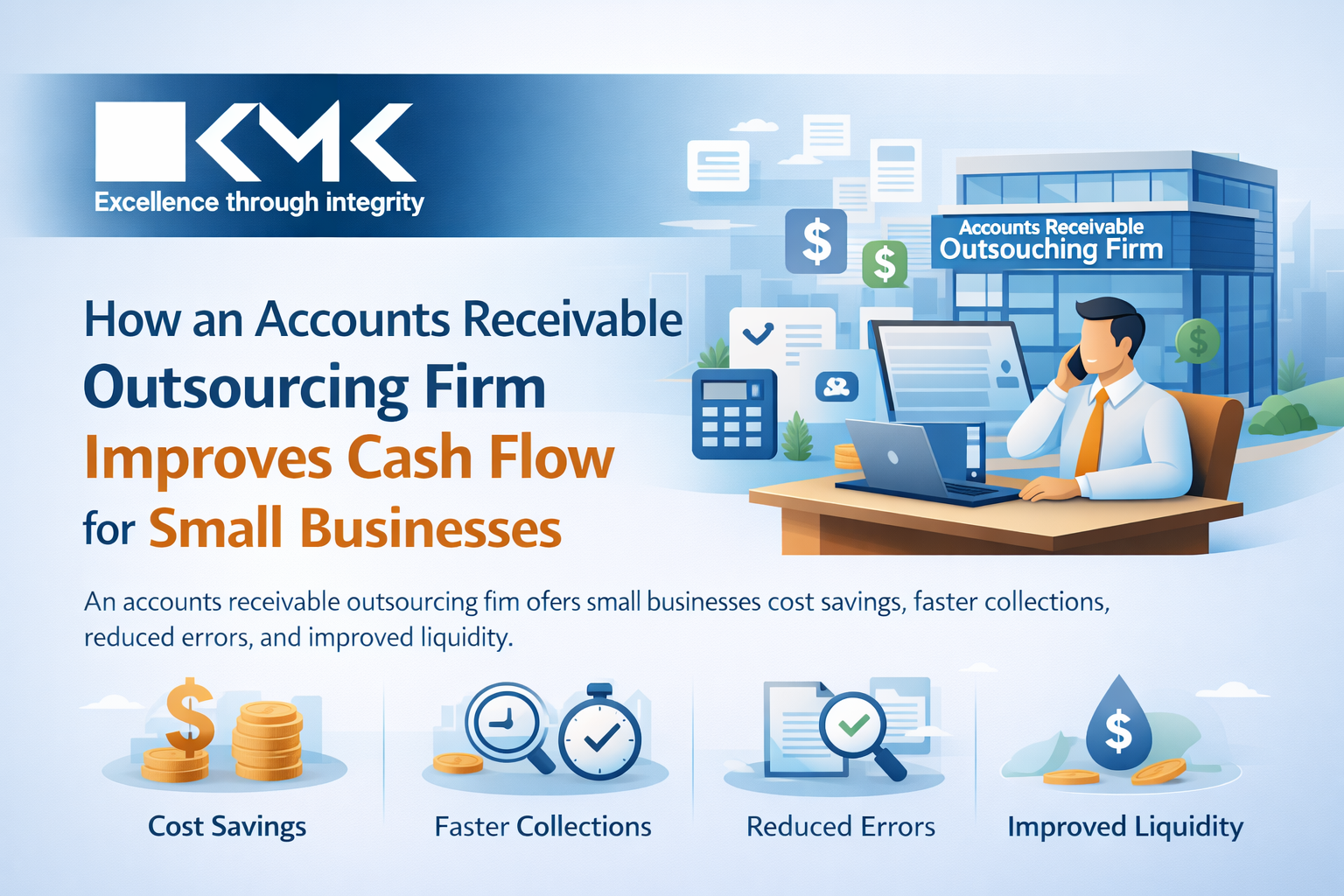 An accounts receivable outsourcing firm offers small businesses cost savings, faster collections, reduced errors, and improved liquidity. Outsourcing AR not only guarantees professional management of receivables but also frees time and resources to focus on scaling the business