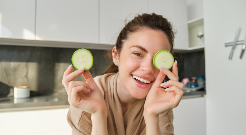Place chilled cucumber slices on your eyes for 15 minutes.
