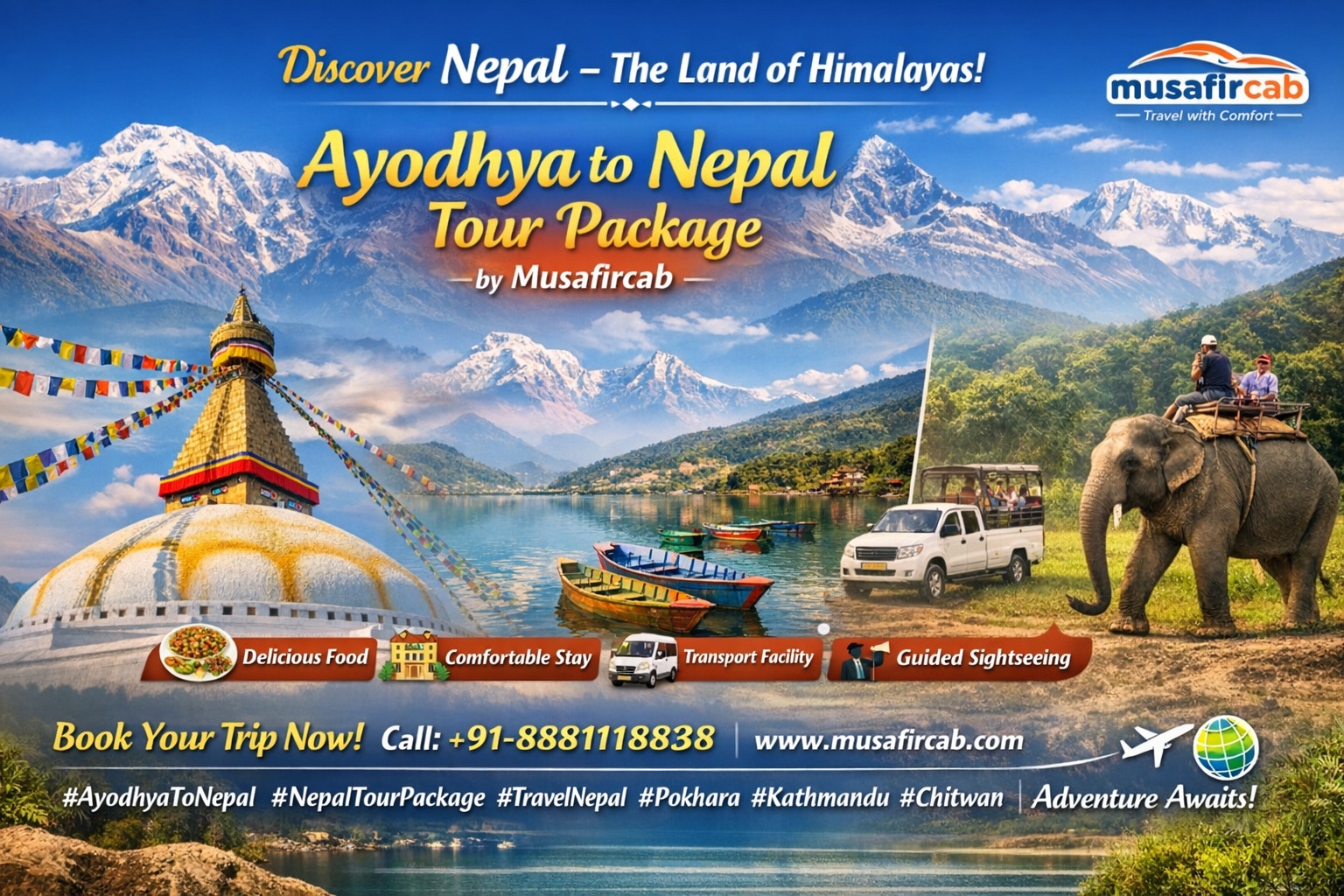A journey from Ayodhya to Nepal is more than just a vacation—it’s a soulful experience that connects spirituality, culture, nature, and adventure in one unforgettable trip. With Musafircab Nepal Tour Package from Ayodhya, you don’t just travel; you explore, discover, and create memories that stay with you for a lifetime.