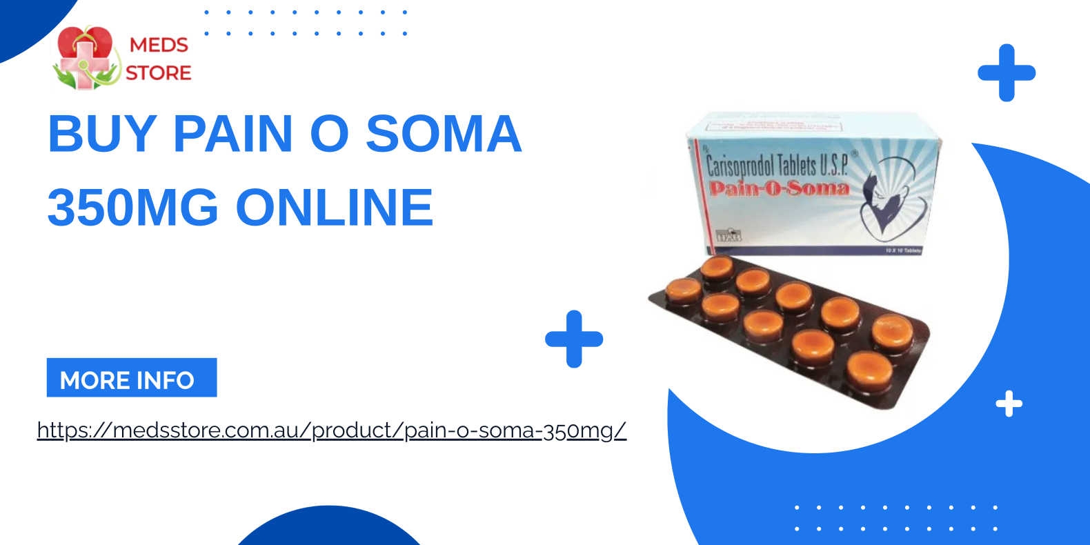 You might be able to take 350 mg of Pain O Soma if you have a sprain, strain, or small injury that hurts your muscles. People often take it when they can't move because their muscles hurt from working out, getting hurt at work,Buy Pain O Soma 350 mg in Australia or getting into an accident.Don't take the drug for a long time. Many prescriptions don't work for very long. If you take them for a long time, you could become addicted to them or have side effects you don't want. When a patient has pain that lasts for a long time, doctors usually look for other treatments that will be safer in the long run.