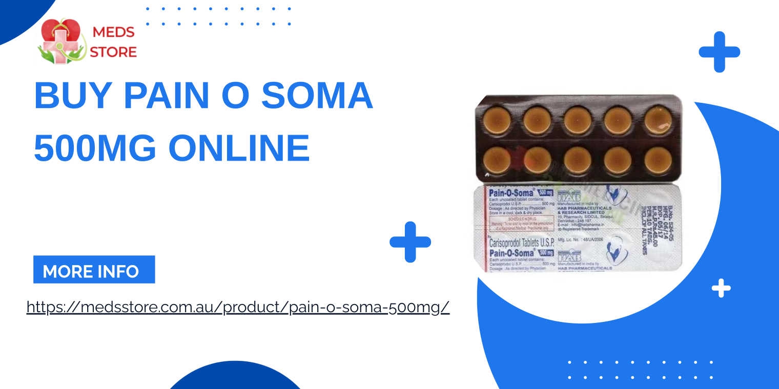 You need a prescription to get Pain O Soma 500 mg. It makes muscles less tense. It is supposed to help with short-term management of severe musculoskeletal pain. People often search for "Buy Pain O Soma 500Mg Online," "Buy Pain O Soma 500Mg in Australia," and "Order Pain O Soma 500Mg Online." It's much more important to know what the drug is for, how it works, and how safe it is than just how to get it. To get safe and effective results, you need to use the drug safely, have a doctor watch over you, and know about the possible risks. Patients can get better faster and take fewer risks if they put education and making smart choices first.