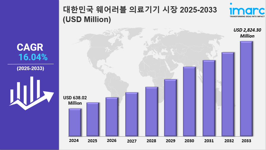 IMARC 그룹은 최근 "한국 웨어러블 의료기기 시장 규모, 점유율, 동향 및 기기 유형, 제품, 애플리케이션, 유통 채널 및 지역별 전망, 2025-2033"이라는 새로운 연구 보고서를 발표했으며,  시장 동인, 세분화, 성장 기회, 동향 및 경쟁 환경에 대한 상세한 분석을 통해 현재와 미래의 시장 시나리오를 이해하고 있습니다.