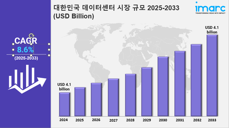 IMARC 그룹은 최근 "한국 데이터 센터 시장 보고서"라는 새로운 연구 보고서를 발표  했습니다. 이 보고서는 데이터 센터 규모(대형, 초대형 대형, 중형, 메가형, 소형), 계층 유형(Tier 1 2, Tier 3, Tier 4), 점유율(비운영 및 운영 중), 그리고 2025-2033 지역 기준으로,  시장 동인, 세분화, 성장 기회, 동향 및 경쟁 환경에 대한 상세한 분석을 제공하여 현재와 미래의 시장 시나리오를 이해합니다.