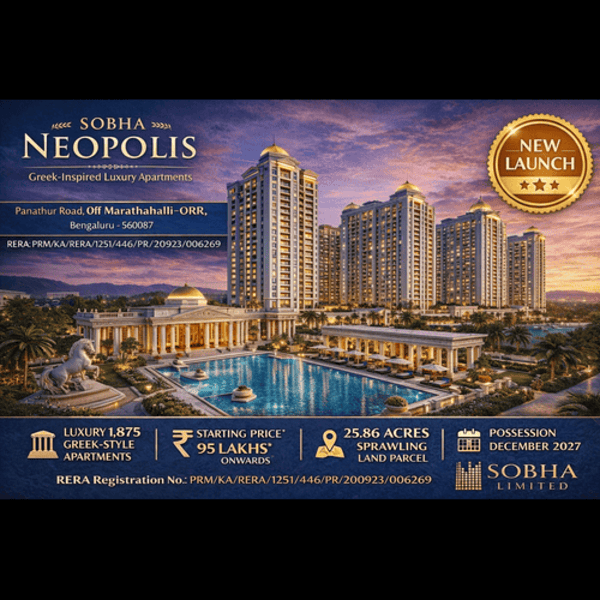 Buying a home is also a financial decision. Sobha Neopolis is a very smart investment for several reasons.First, the location is a proven winner. The Panathur-ORR corridor is in high demand. Property values here keep growing. Second, Sobha’s brand ensures the project’s quality and timely delivery. This protects your investment.Third, the unique Greek theme sets it apart. Unique properties often have higher value over time. Finally, the planned possession in 2027 gives you a clear timeline. You can plan your future with confidence.