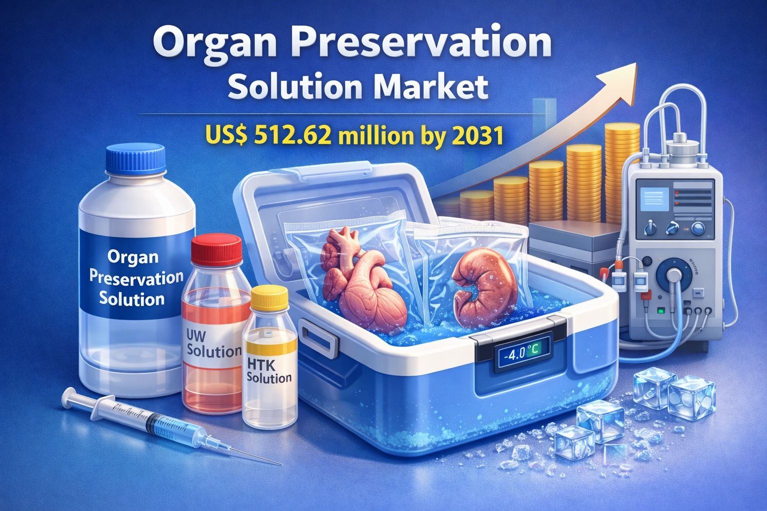 Growth is primarily driven by the increasing number of organ transplant procedures, advancements in preservation technologies, and rising awareness about organ donation.