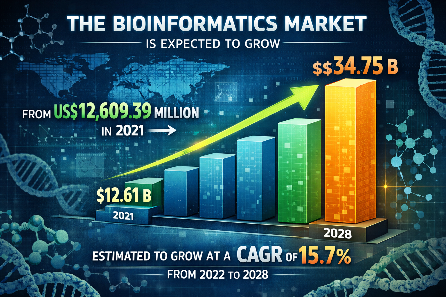 The global bioinformatics market is experiencing significant expansion, driven by the growing need to manage and interpret large volumes of biological and clinical data. The market is projected to increase from US$ 12,609.39 million in 2021 to US$ 34,749.78 million by 2028, registering a strong CAGR of 15.7% during the forecast period from 2022 to 2028. This robust growth reflects the increasing value of bioinformatics across genomics, drug discovery, clinical diagnostics, and precision medicine. As life sciences research becomes more data intensive, organizations are investing heavily in advanced computational tools and analytics platforms to accelerate innovation and improve healthcare outcomes.