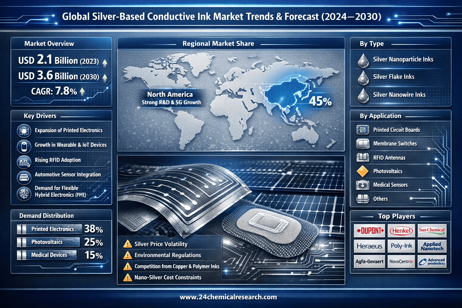 According to 24Chemical Research, Global Silver-Based Conductive Ink Market continues to demonstrate robust growth, driven by increasing demand across electronics, automotive, and healthcare applications. The market, valued at USD 2.1 billion in 2023, is projected to expand at a CAGR of 7.8%, reaching approximately USD 3.6 billion by 2030. This growth is propelled by advancements in printed electronics, flexible devices, and the rising adoption of RFID technology.