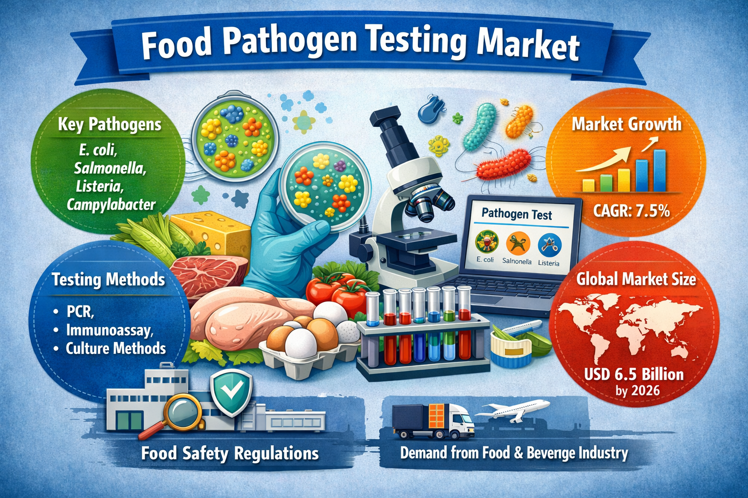 Food pathogen testing refers to the systematic process of detecting life threatening bacteria, viruses, and other microorganisms in food products. With approximately 31 known pathogens capable of causing serious foodborne illnesses, routine testing has become an essential component at every stage of food production, from raw material sourcing to final distribution. Rising cases of food poisoning and outbreaks linked to contaminated meat, dairy, and processed food have significantly intensified the demand for reliable and rapid testing solutions.