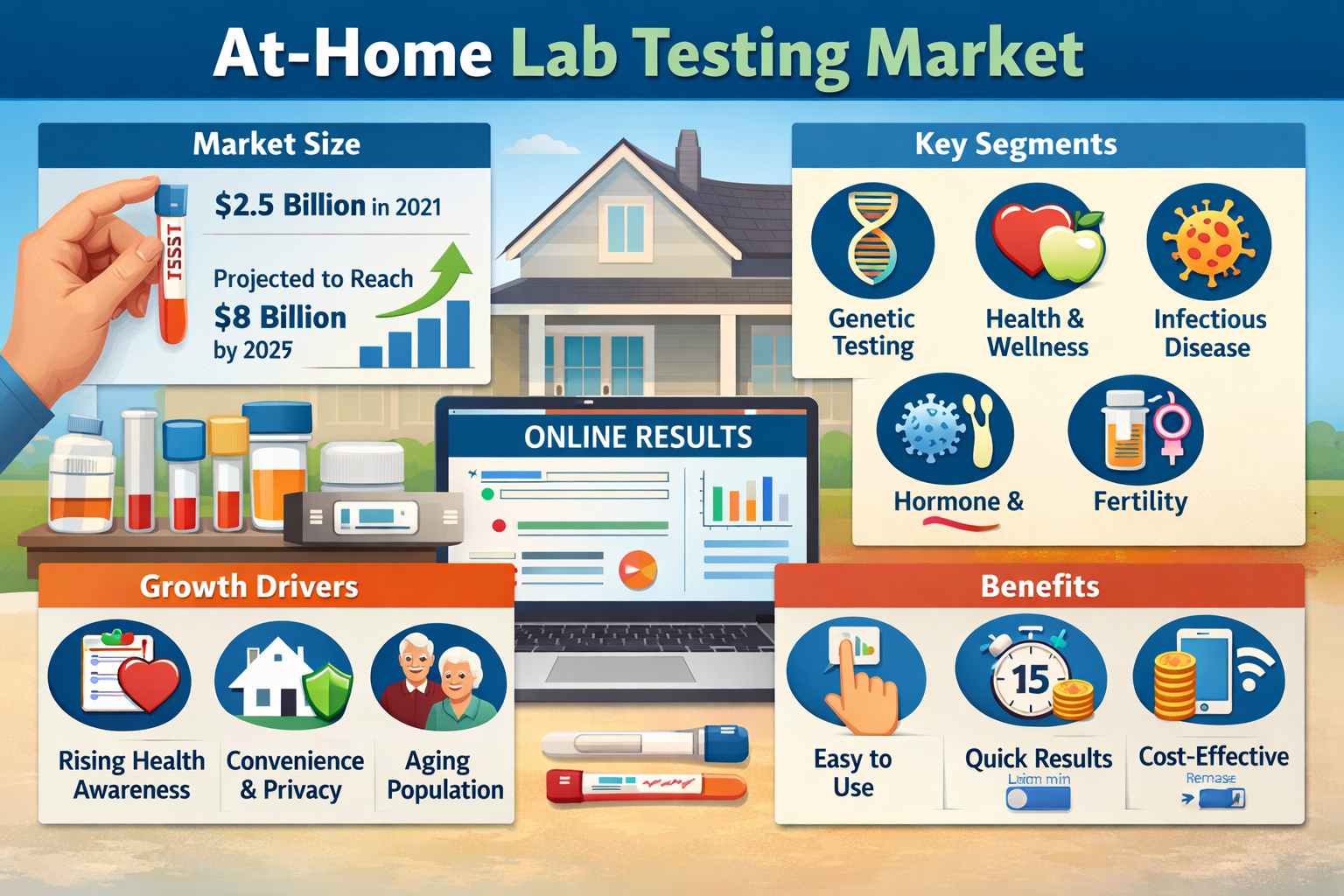 Convenience-driven healthcare models are reshaping diagnostic testing worldwide. At-home lab testing offers flexible and reliable alternatives to traditional laboratory services. Market expansion reflects rising adoption across diverse demographic groups.