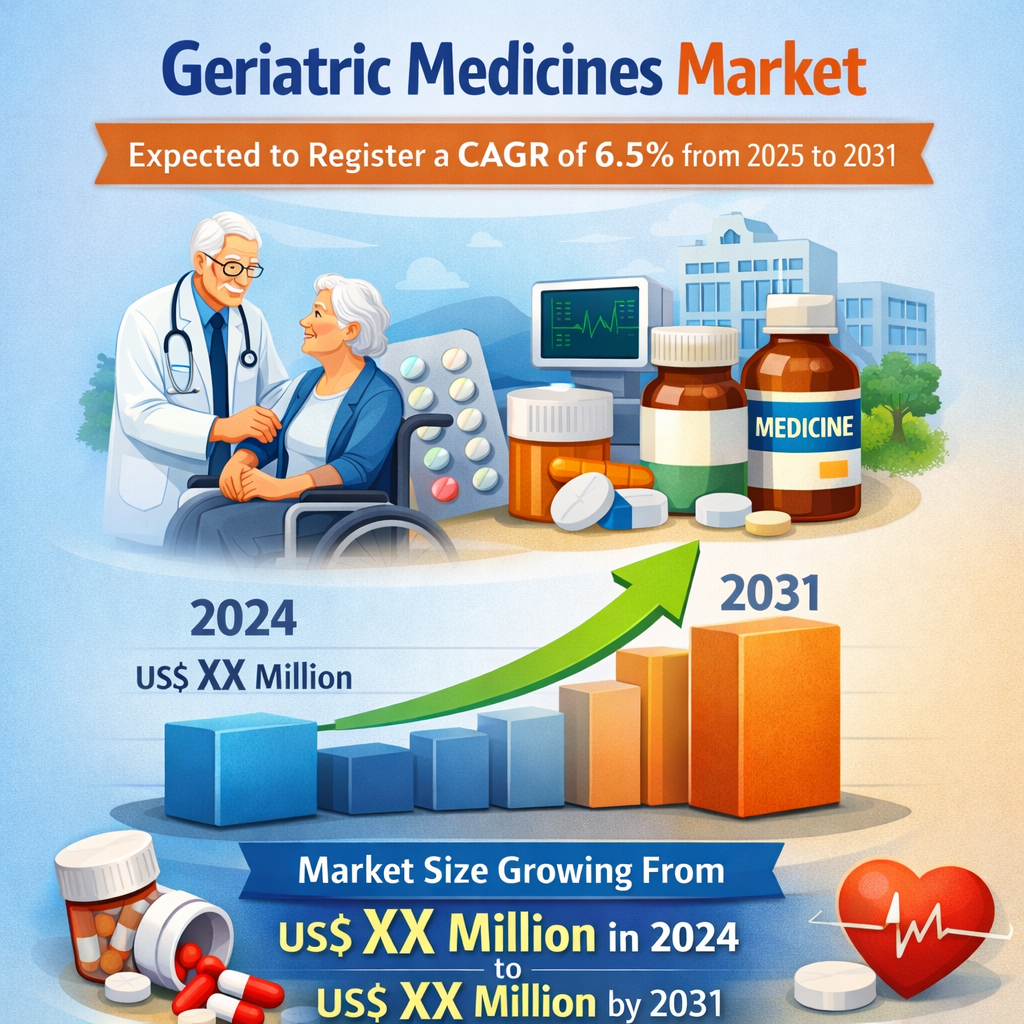 The geriatric medicines market is witnessing strong and sustained growth as healthcare systems worldwide adapt to the needs of an aging population. The market is expected to register a CAGR of 6.5% from 2025 to 2031, expanding from US$ XX million in 2024 to US$ XX million by 2031. Longer life expectancy, combined with rising incidences of age-related disorders, is reshaping pharmaceutical development and care delivery models focused on elderly patients.