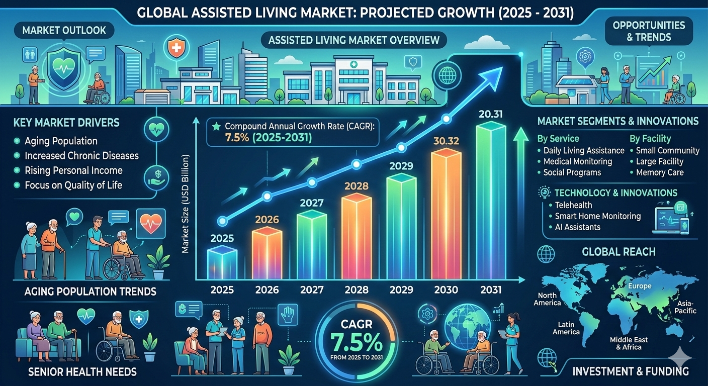 The Assisted Living Market is projected to register a CAGR of 7.5% from 2025 to 2031, with market value rising from US$ XX million in 2024 to US$ XX million by 2031. Increasing healthcare awareness, lifestyle transitions, and senior population growth are key factors shaping industry momentum. Providers are focusing on integrated care models that combine medical assistance with quality-of-life services.