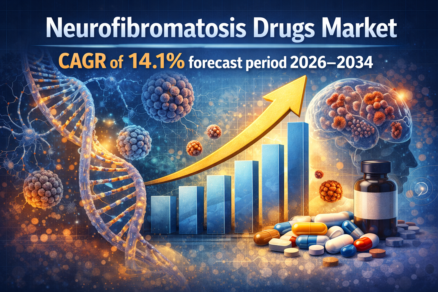 The global Neurofibromatosis Drugs Market size is projected to reach US$ 12.34 billion by 2034 from US$ 3.45 billion in 2025. The market is anticipated to register a CAGR of 14.1% during the forecast period 2026–2034. This strong growth trajectory reflects increasing awareness of rare genetic disorders, expanding research into targeted therapies, and rising investments in orphan drug development. Neurofibromatosis is a genetic condition that causes tumors to develop along nerves in the skin, brain, and other parts of the body. Although it is classified as a rare disease, the growing focus on precision medicine and improved diagnostic capabilities has increased the identification of patients worldwide. As a result, pharmaceutical companies and biotechnology firms are investing in innovative treatments that address the underlying genetic mechanisms associated with the disorder.