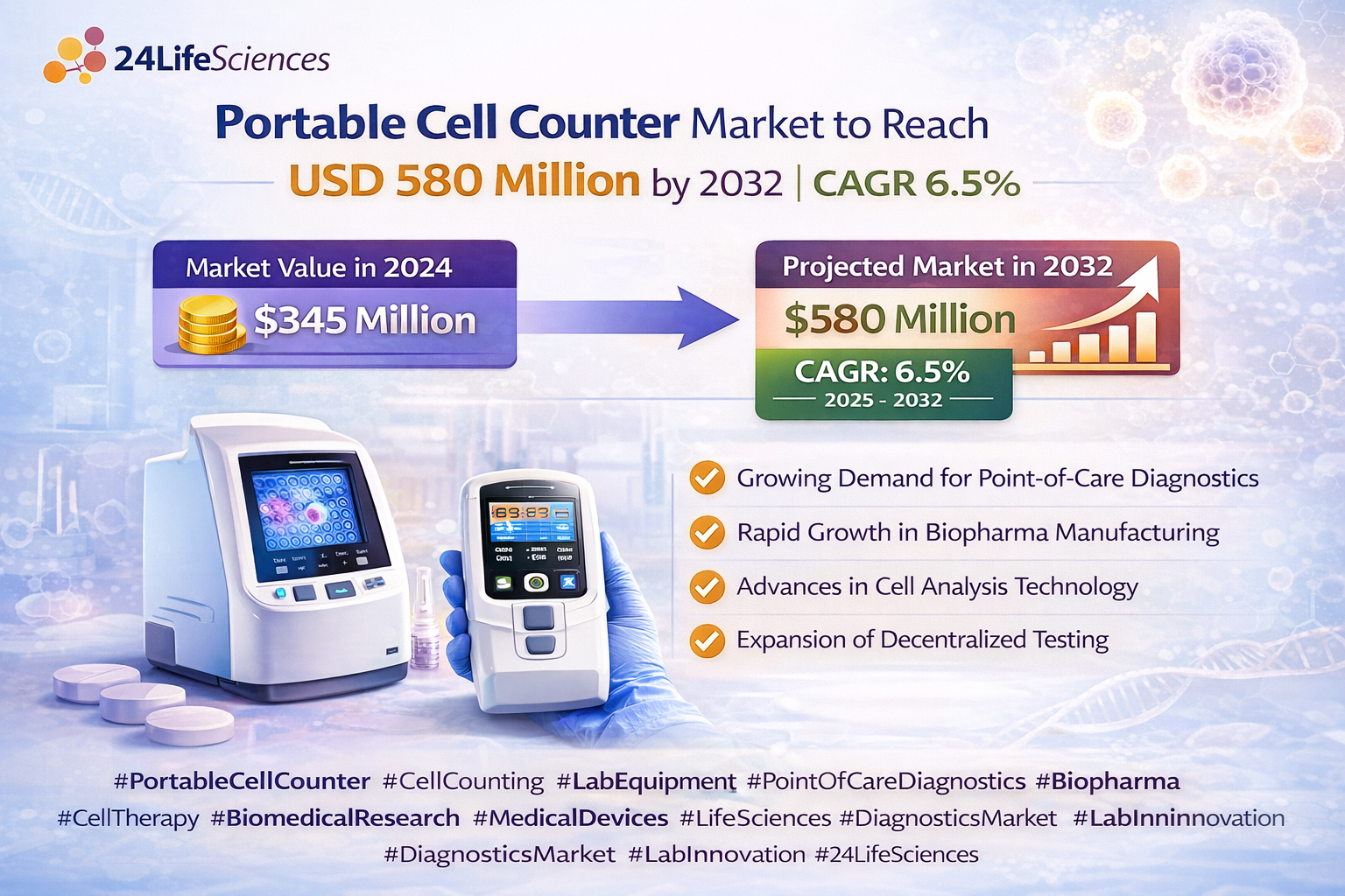 According to a newly published market research report by 24LifeSciences, global portable cell counter market was valued at USD 345 million in 2024 and is projected to reach USD 580 million by 2032, growing at a compound annual growth rate (CAGR) of 6.5% during the forecast period 20252032.