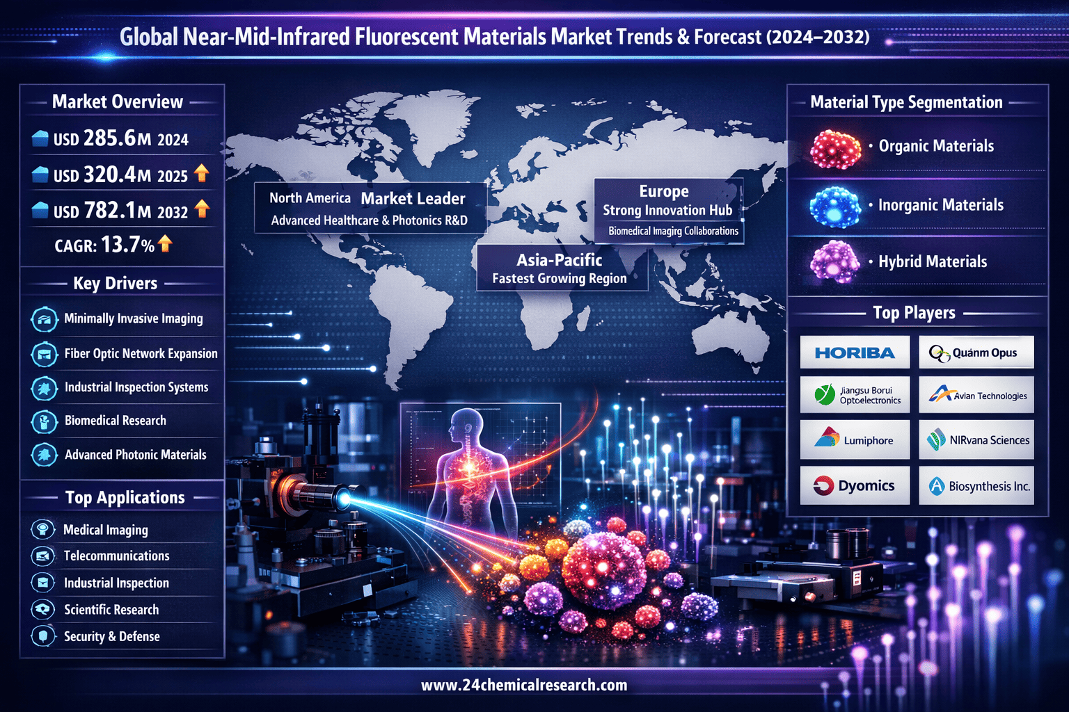 Global Near-mid-infrared Fluorescent Materials market size was valued at USD 285.6 million in 2024. The market is projected to grow from USD 320.4 million in 2025 to USD 782.1 million by 2032, exhibiting a CAGR of 13.7% during the forecast period.