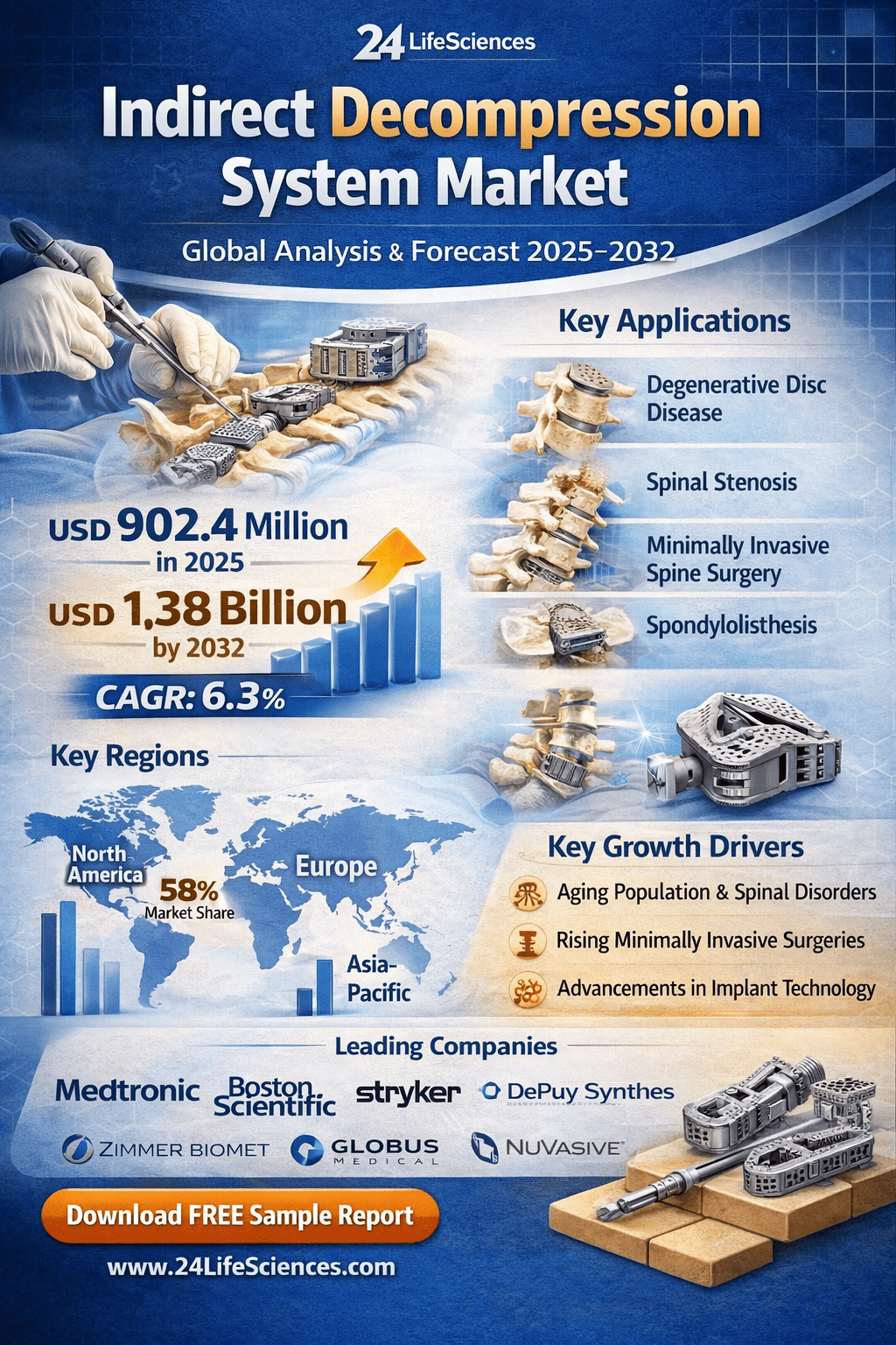 According to a newly published market research report by 24LifeSciences, global indirect decompression system market was valued at USD 902.4 million in 2025 and is projected to reach USD 1.38 billion by 2032, growing at a compound annual growth rate (CAGR) of 6.3% during the forecast period 2025–2032.